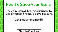 I have fully added the Save and Load feature for Shopping Frenzy! I've also made a button that opens a short readable tutorial that teaches the player how to use the Save and Load feature. That's all...
